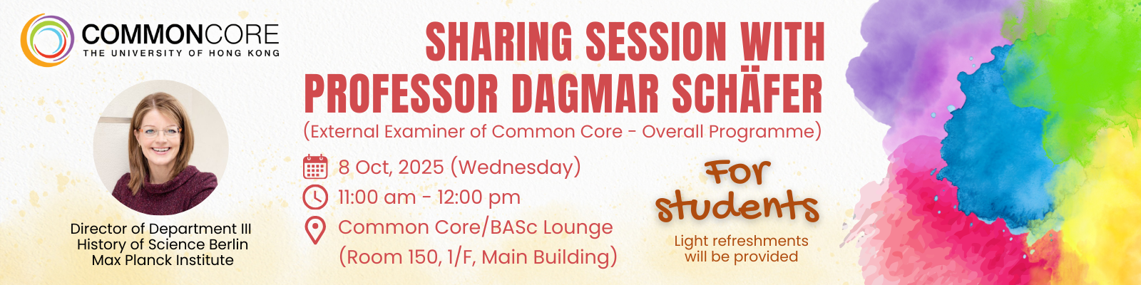 A session will be held for a representative group of students who have taken CC courses to meet with Professor Schäfer as an opportunity for her to know more about students’ experiences in the CC. The details of the session is as follows: