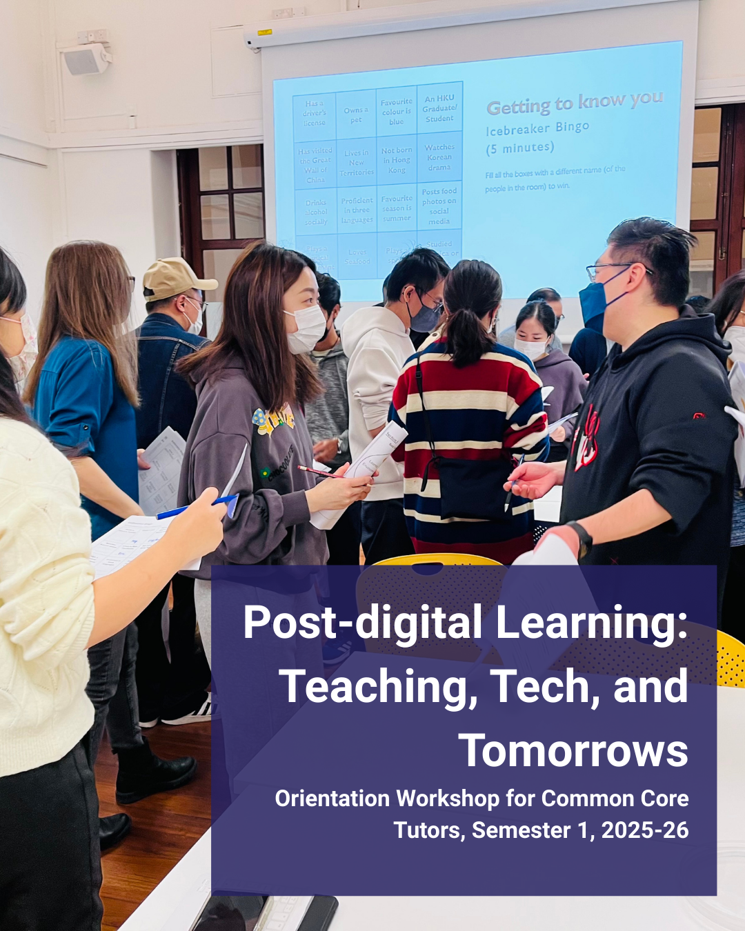 Common Core / BASc Lounge Room 150 1/F Main Building, The University of Hong KongAs an initiative to provide a professional development path for tutors, the Communication-Intensive Courses (CiC) initiative in collaboration with the Common Core and the Centre for Applied English (CAES), is hosting a 1-day workshop open to tutors. Date: Friday, 12 January 2024 Time: 10:00 am – 4:00 pm Location: Common Core & BASc Lounge (Main […]